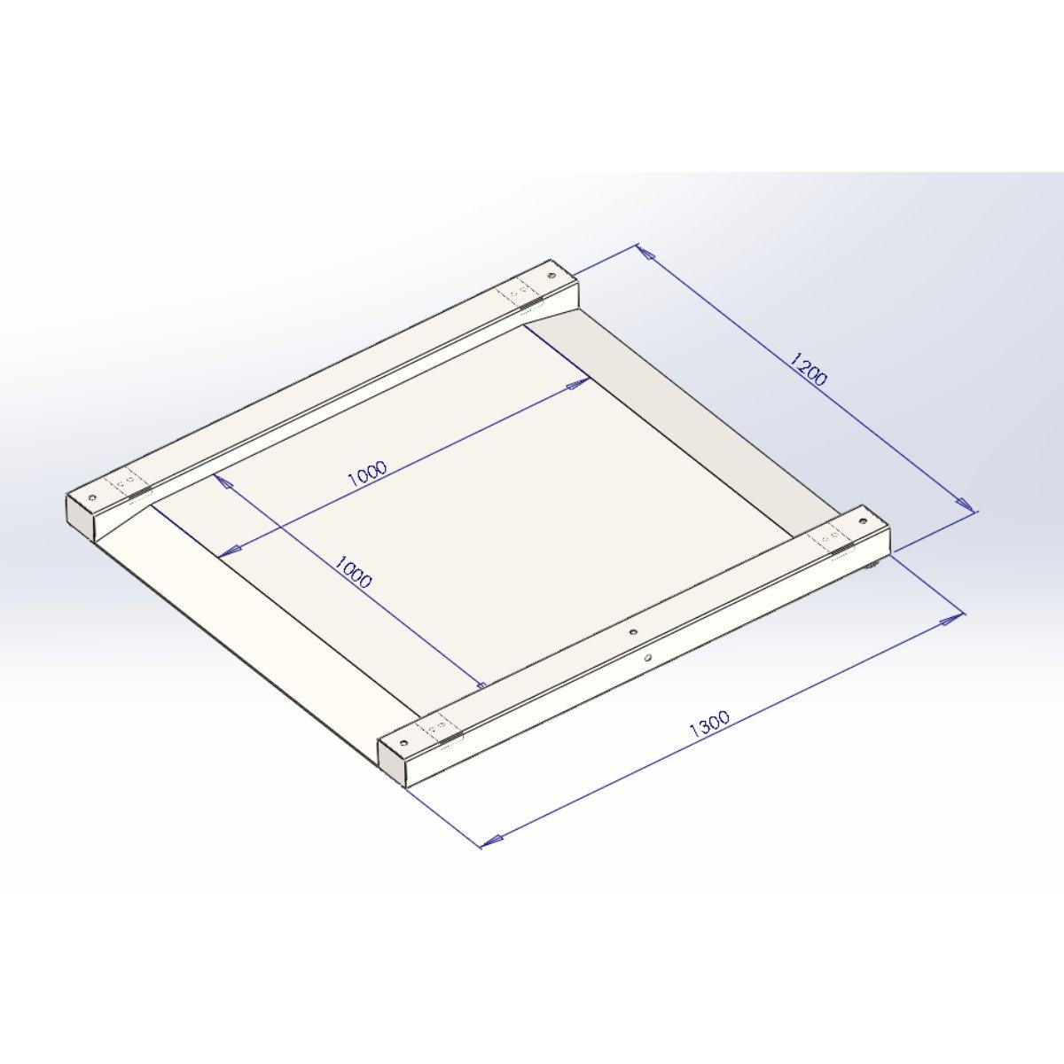 B9C_FTR100100_C5_1500_K_PRO_OIML Max:1,5T Min:10kg e=d=0,5kg, platforma 100x100cm, grubość 5mm, niebieska, 4 czujniki Keli, miernik B9C jednodziałkowy, wyświetlacz podświetlany LCD, obudowa z tworzywa, zasilacz, akumulator, RS232c, legalizacja