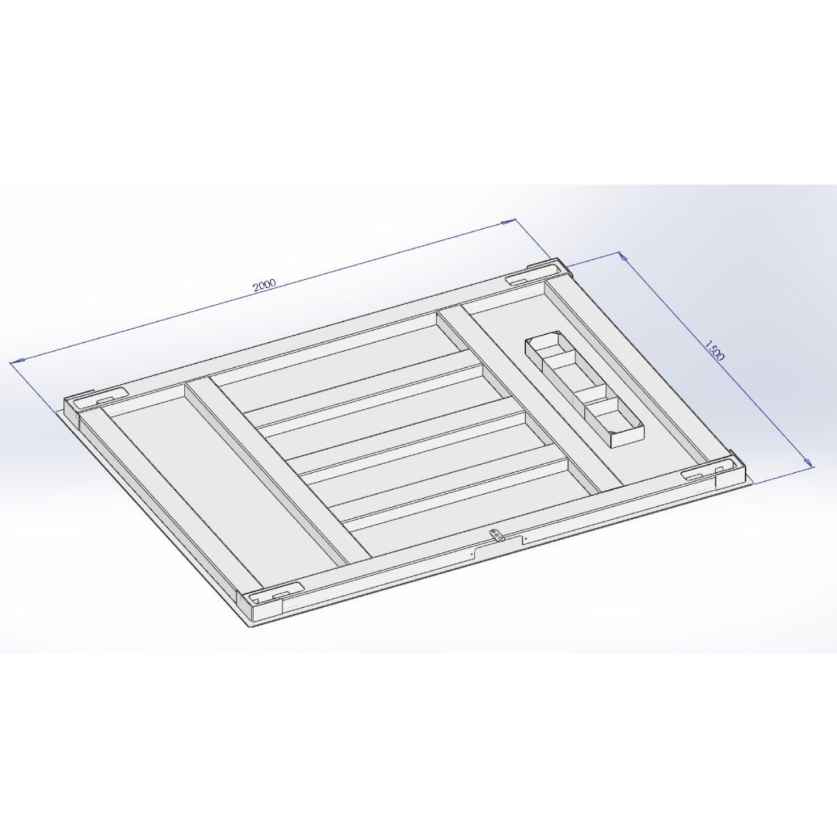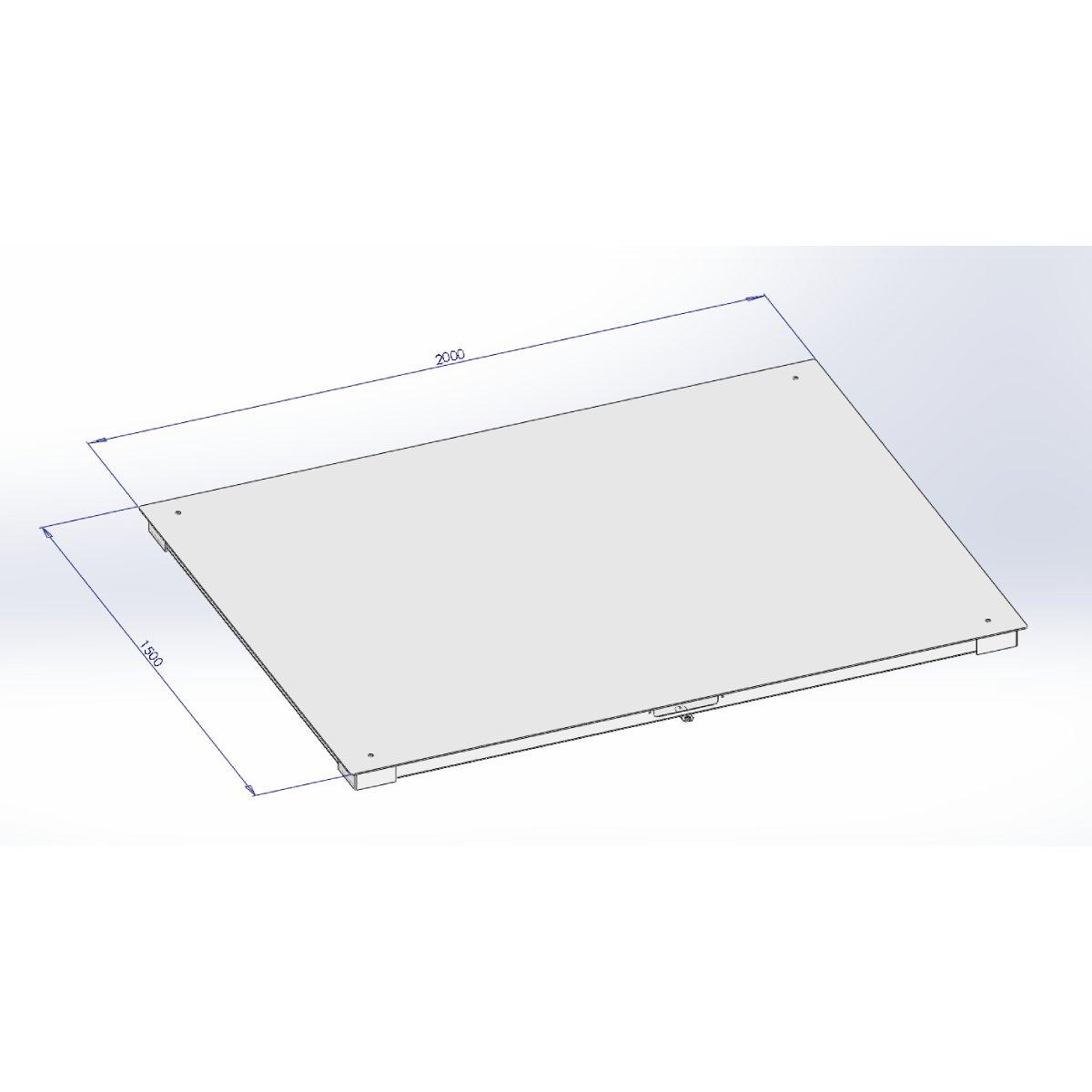 B8C_FW150200_G4_1500_L_ECO_CE Max:1,5T Min:10kg d=0,5kg, platforma 150x200cm, grubość 4mm, szara, 4 czujniki LL, miernik B8C jednodziałkowy, wyświetlacz podświetlany LCD, obudowa z tworzywa, zasilacz, akumulator, RS232c, CE