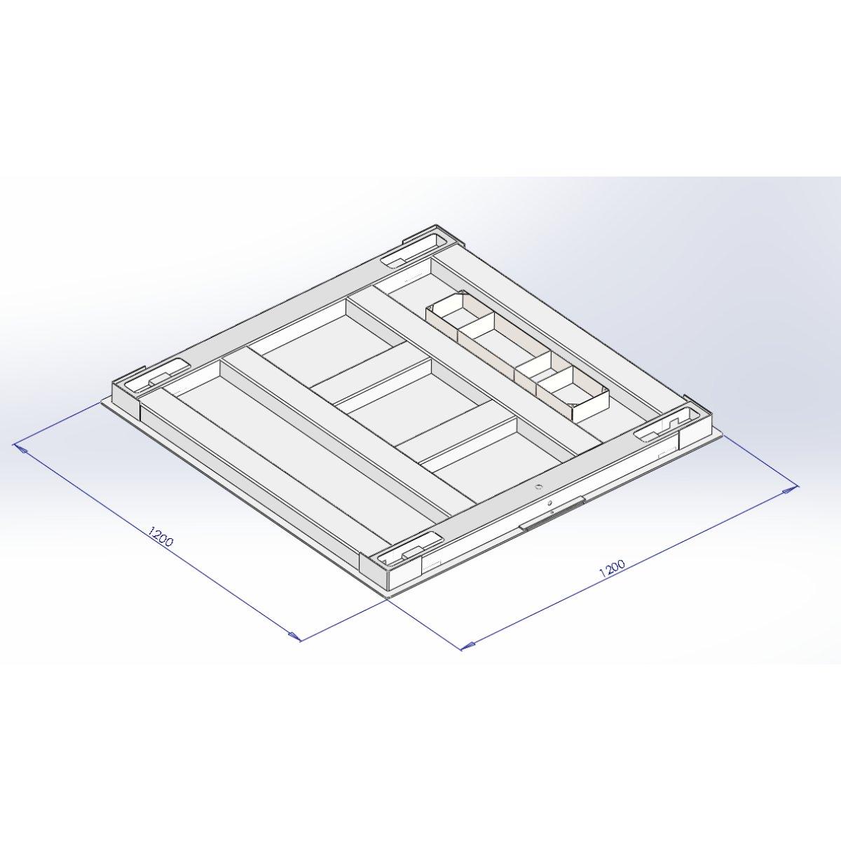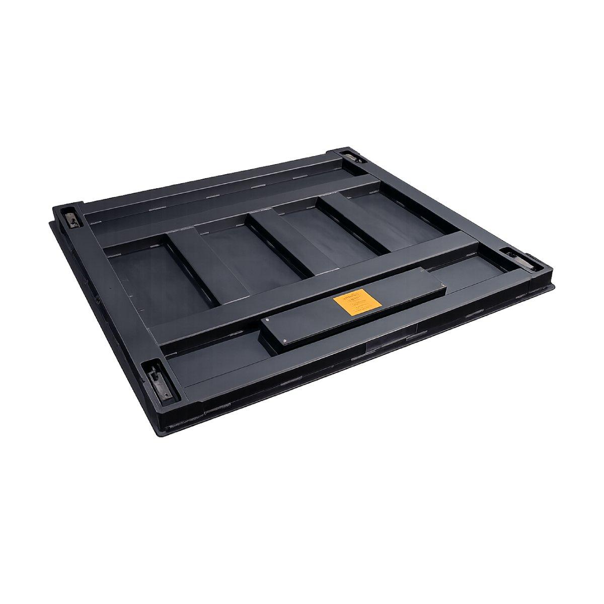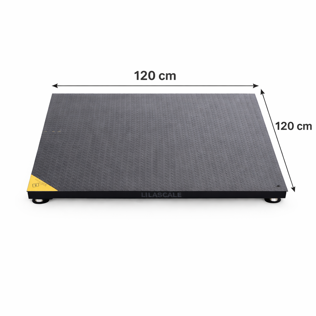 B9C_FW120120_B5_1500_K_BAS_OIML Max:1,5T Min:10kg e=d=0,5kg, platforma 120x120cm, grubość 5mm, czarna, 4 czujniki Keli, miernik B9C jednodziałkowy, wyświetlacz podświetlany LCD, obudowa z tworzywa, zasilacz, akumulator, RS232c, legalizacja