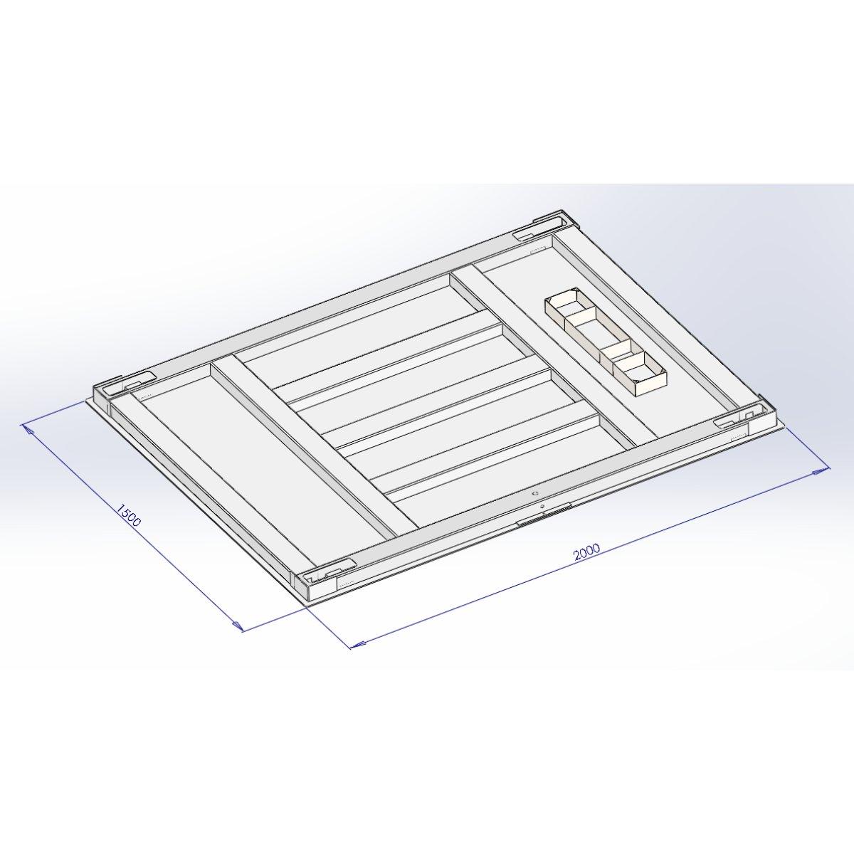 B9C_FW150200_B5_1500_K_BAS_OIML Max:1,5T Min:10kg e=d=0,5kg, platforma 150x200cm, grubość 5mm, czarna, 4 czujniki Keli, miernik B9C jednodziałkowy, wyświetlacz podświetlany LCD, obudowa z tworzywa, zasilacz, akumulator, RS232c, legalizacja