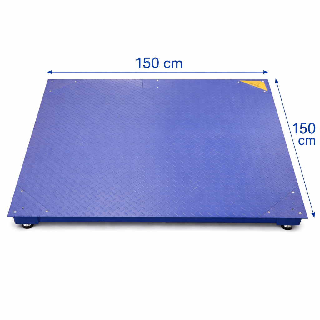 B9C_FWH150150_C5_1500_K_PRO_OIML Max:1,5T Min:10kg e=d=0,5kg, platforma 150x150cm, grubość 5mm, niebieska, 4 czujniki Keli, miernik B9C jednodziałkowy, wyświetlacz podświetlany LCD, obudowa z tworzywa, zasilacz, akumulator, RS232c, legalizacja